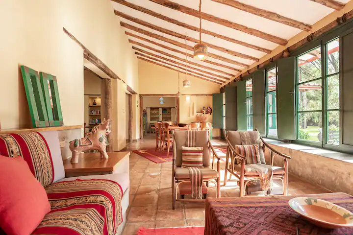 Our primary accommodations are typically at Martina Wasi, a beautiful private villa just a short 10-minute walk from the heart of Pisac in Peru’s enchanting Sacred Valley. This traditionally-built Andean villa sits amidst over 4,000 square meters of gardens and farmland, backed by epic mountain vistas.